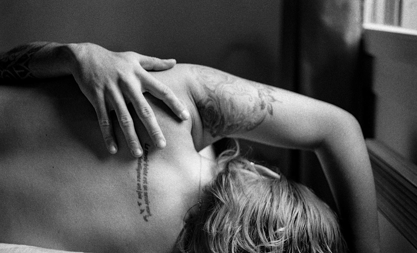 Selon les études anthropologiques de David le Breton, la condition humaine est corporelle. C’est par elle que nous sommes nommés, jugés, identifiés à une appartenance sociale ou culturelle, à une couleur, etc. La peau incarne la personne en la distinguant des autres, elle dessine les limites de soi. Ainsi, en partant de cette définition, ma série photographique s’inscrit dans l’idée du passage d’une peau à l’autre. Les images portent, par conséquent, sur l’entrelacement de deux personnes, deux peaux et de deux âmes. L'idée étant de montrer deux corps si différents, mais qui peuvent s'entremêler dans un sens presque sculptural.